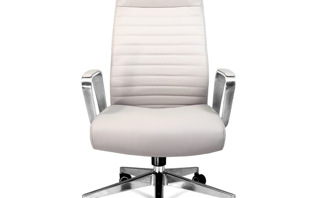 El Sillón Directivo Mallorca respaldo alto en piel color crema es perfecto para oficinas ejecutivas. Con respaldo alto, cabecera integrada, brazos de aluminio con pad en piel y base de aluminio certificada BIFMA, ofrece comodidad, resistencia y un diseño sofisticado que proyecta profesionalismo.