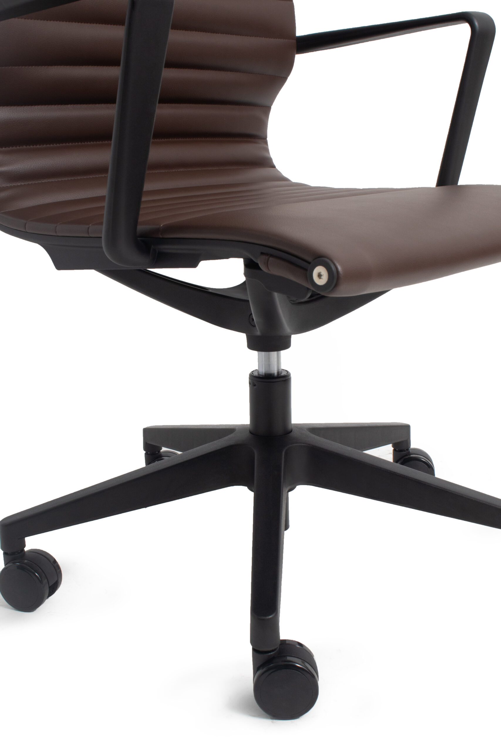 La base de nylon de 27 pulgadas cuenta con rodajas de PU de 60 mm, también certificadas, capaces de soportar hasta 136 kg por rodaja y más de 100,000 ciclos de uso.