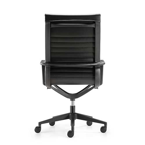 Su respaldo está fabricado en estructura de polipropileno tapizado en vinil, ofreciendo soporte firme y duradero. El material es resistente a la fricción y conserva una textura suave al tacto. Gracias a su diseño ergonómico, favorece la postura y reduce la fatiga en jornadas prolongadas.