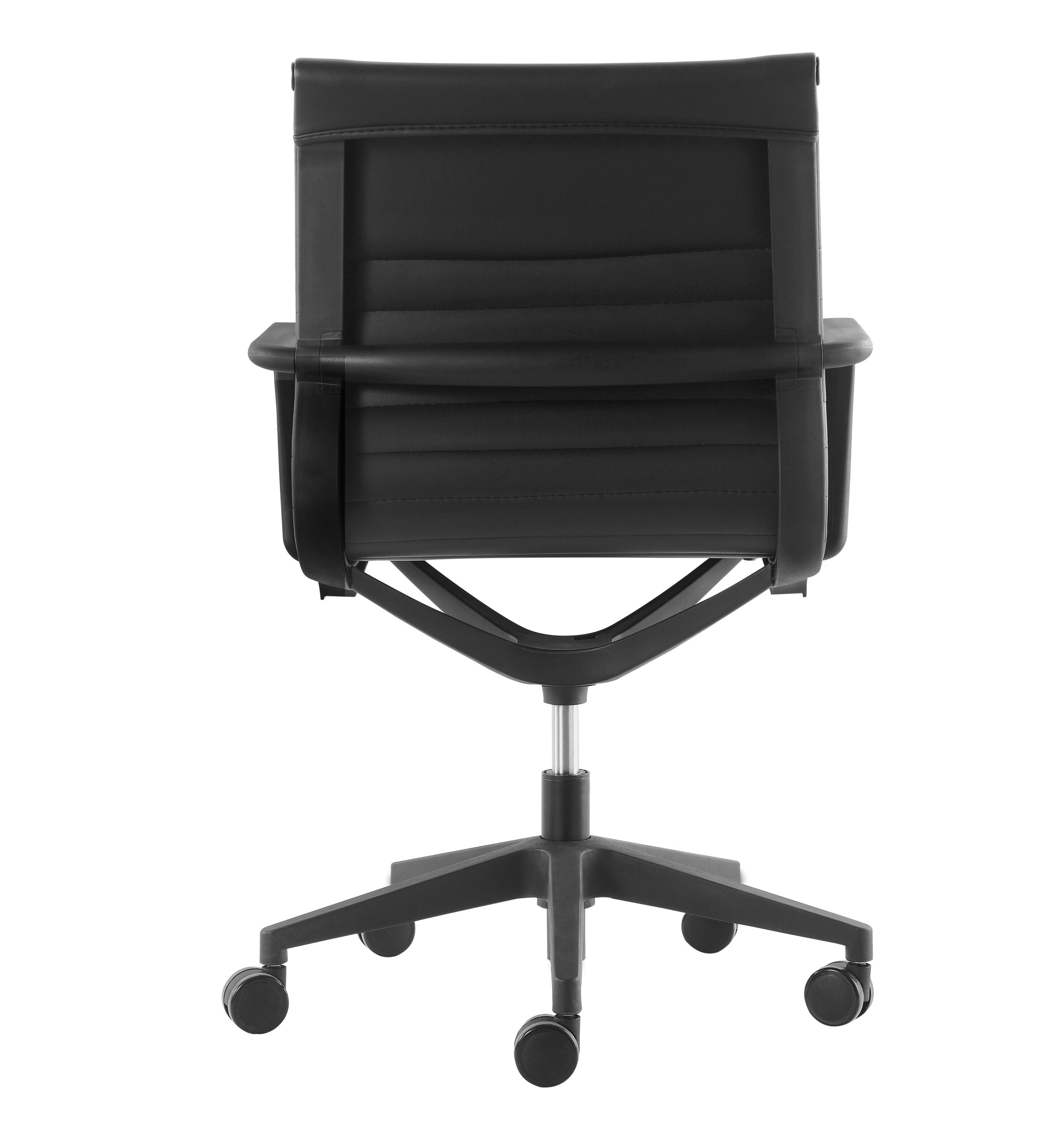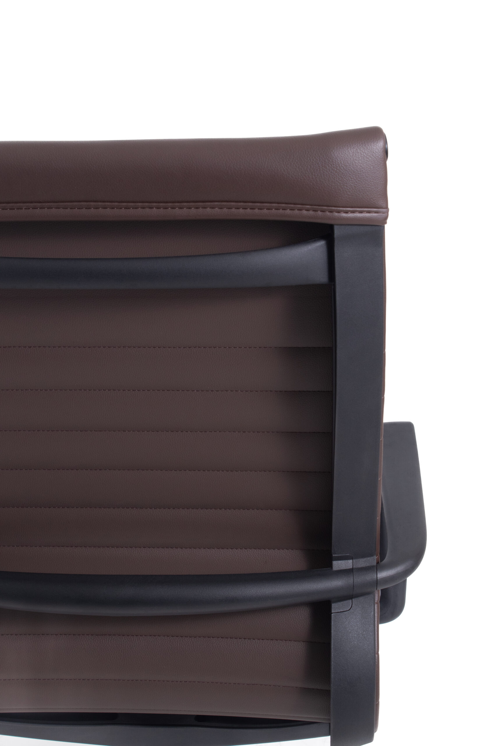 El respaldo medio de la silla Bogotá está tapizado en piel sintética de alta calidad, disponible en color negro o chocolate. Este material brinda una textura suave, elegante y fácil de limpiar, perfecta para mantener un ambiente profesional.