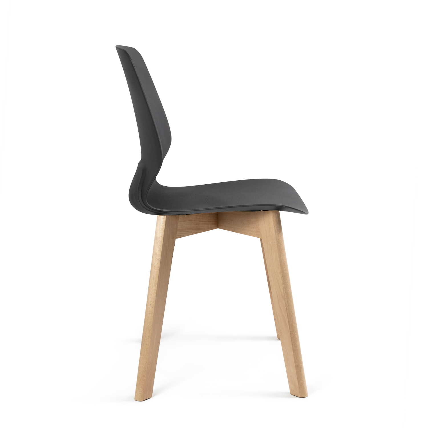 La silla Kolbe con patas de madera une estilo, confort y resistencia. Su estructura de polipropileno de alta densidad ofrece una superficie duradera y fácil de limpiar. Además, su diseño ergonómico se adapta al cuerpo, brindando comodidad incluso durante largas jornadas.