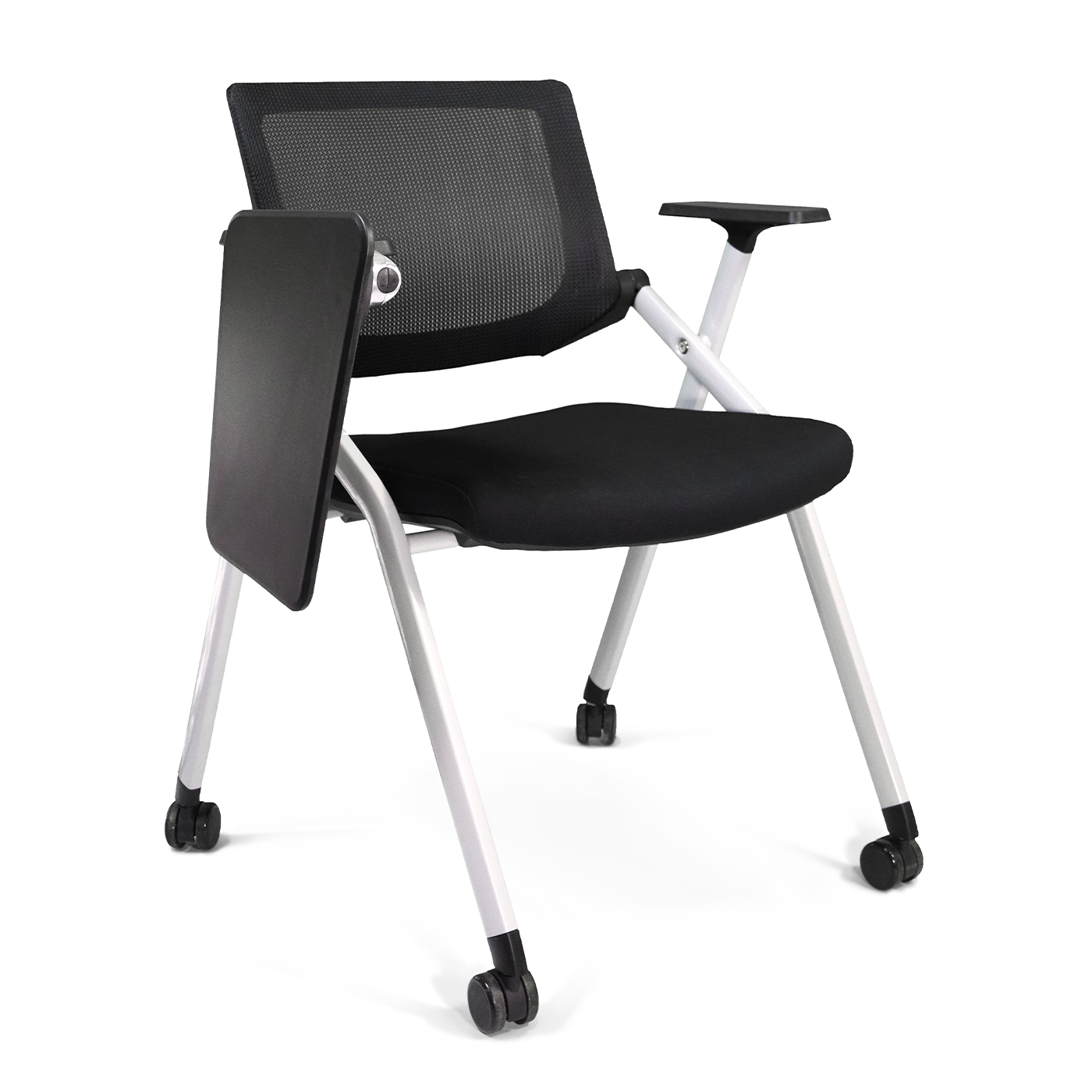 Su estructura plegable permite optimizar el espacio, mientras que su paleta abatible ofrece practicidad en entornos educativos, corporativos o de formación.