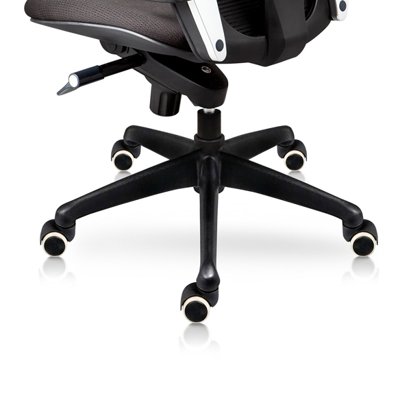 - Respaldo tapizado en malla, con almohadilla lumbar ajustable