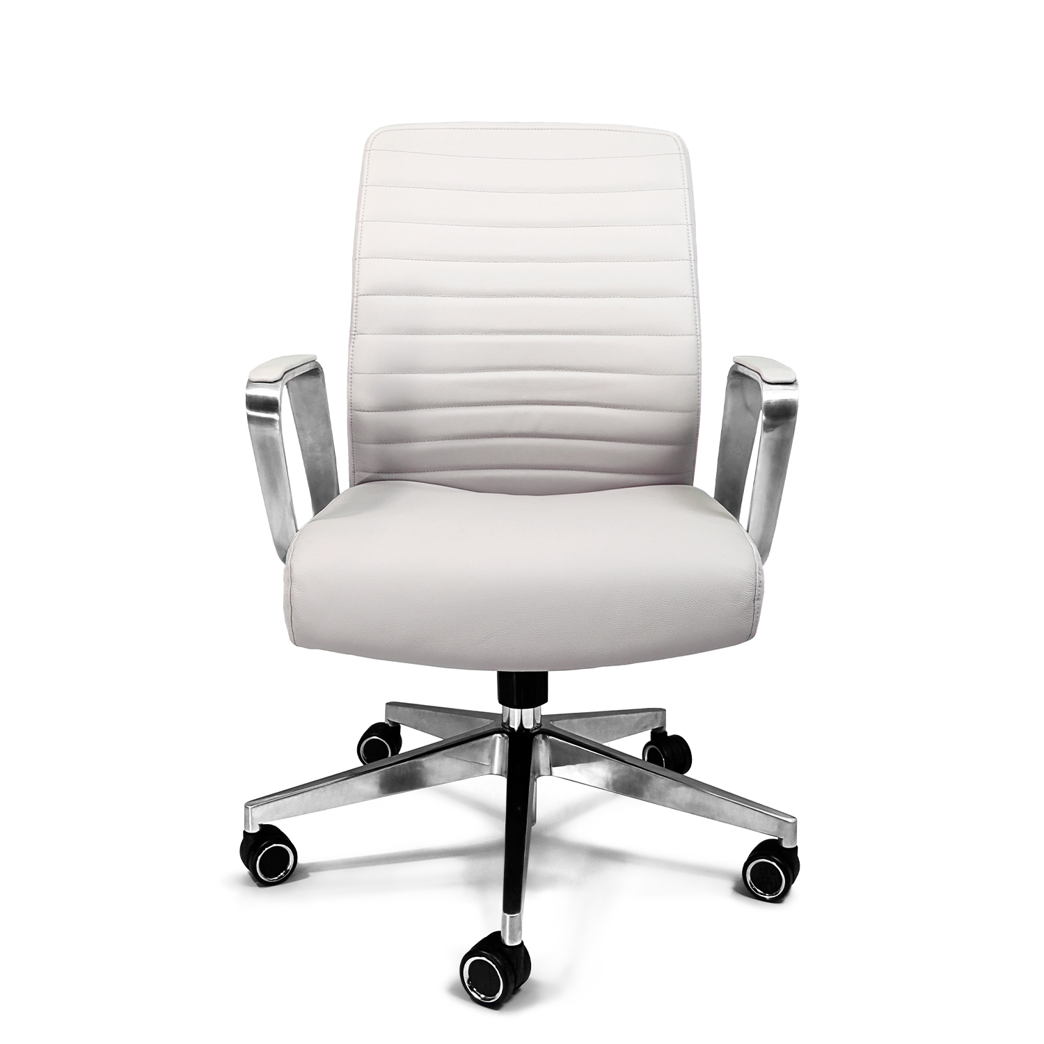 Cuenta con brazos fijos de aluminio con pad en piel, que aportan soporte ergonómico y un diseño refinado. Además, la base de aluminio de 350 mm con rodajas de 60 mm, ambas con certificación BIFMA, proporcionan movilidad suave y estabilidad en cada uso.