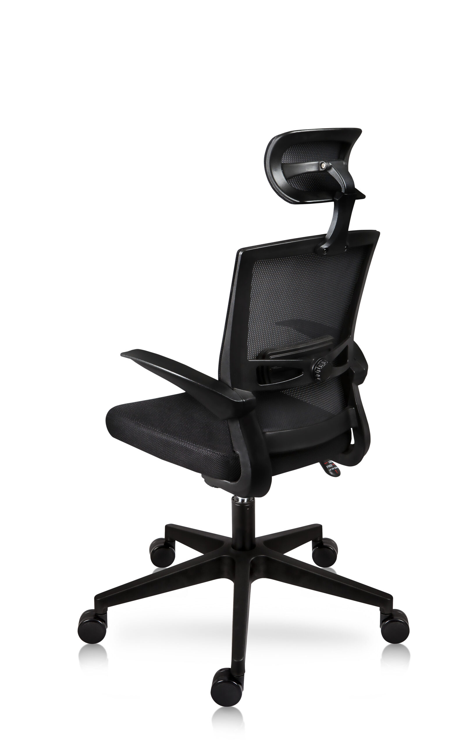 Además, la cabecera ajustable en altura tapizada en malla ofrece apoyo adicional al cuello y la cabeza, ideal para mejorar la postura y el confort.