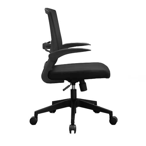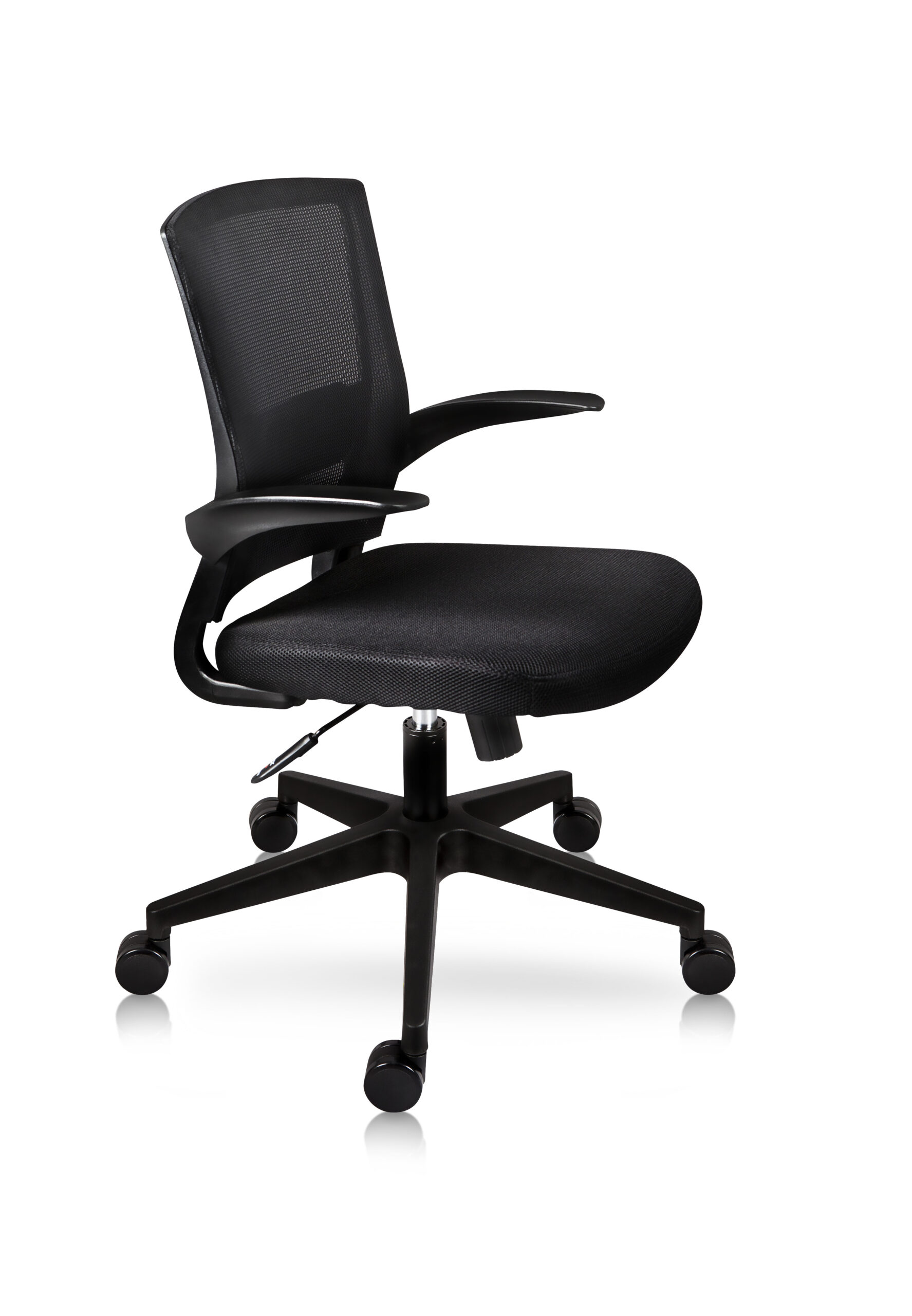 Los brazos de polipropileno están sujetos al respaldo y pueden ajustarse en posición vertical, lo que permite ocultarlos fácilmente cuando se requiere mayor libertad de movimiento.